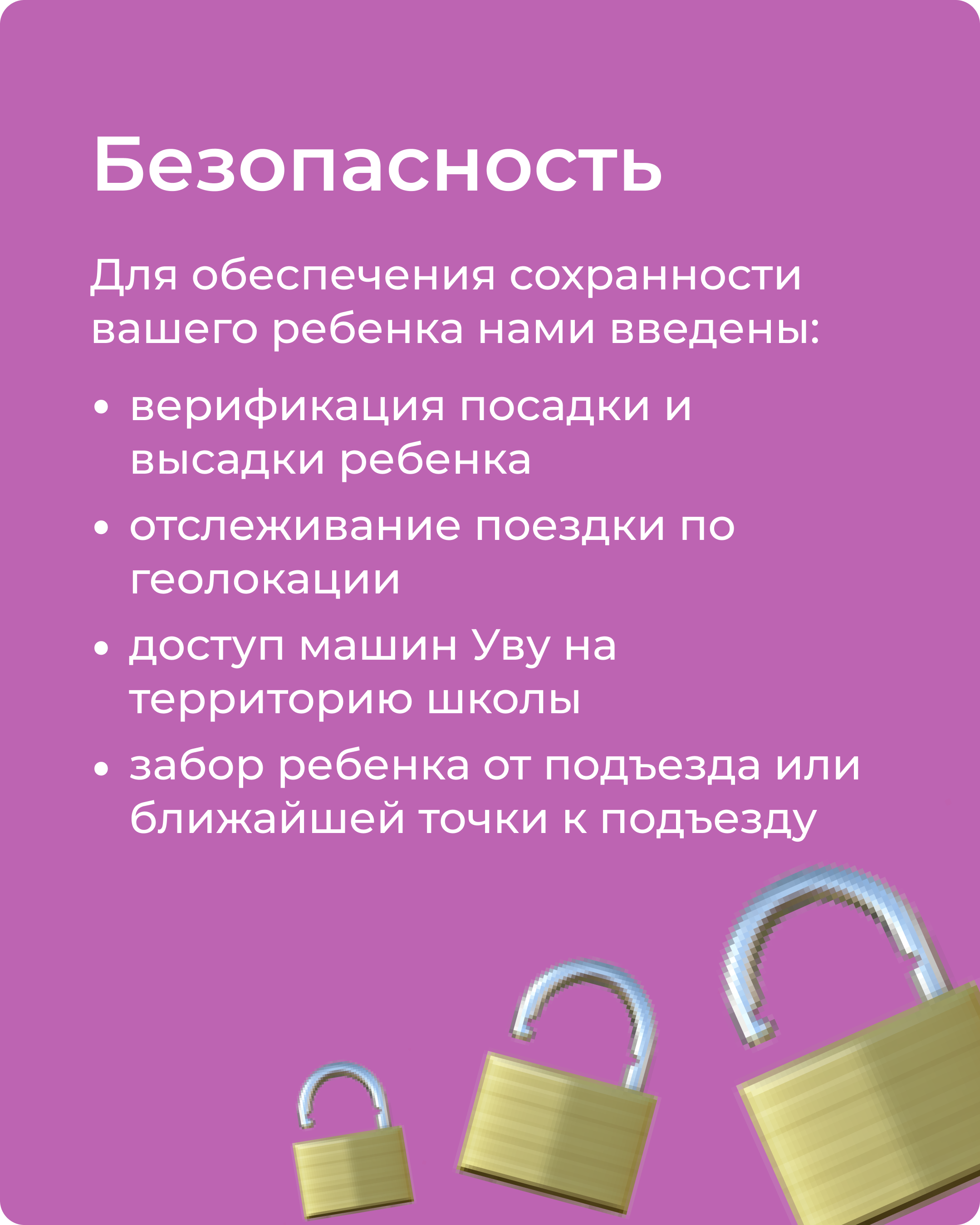 Если все таки ребенок опоздал на автобус, Вы всегда можете заказать UvU Taxi за отдельную плату, функция также доступна в мобильном приложении как разовая поездка, либо родитель может отвезти ребенка самостоятельно.